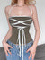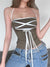 The patchwork pattern and contrasting colors give it a unique look and the tank top style gives it a cool, modern vibe.