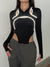 The color style of the top is reflective stripe patchwork, making it eye-catching and trendy. It has a stand collar and a short clothing length, making it a versatile piece that can be paired with various bottoms.