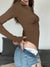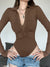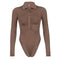 Brown Folds Buttons Long-Sleeve Bodysuit– STUNNING Clothing