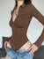 Brown Folds Buttons Long-Sleeve Bodysuit