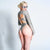 Grey Hooded Hollow Out Drawstring Bodysuit