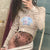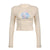 The top is a streetwear style garment that is designed to be worn with casual outfits. It has a short length, meaning it falls above the waistline. The top features a decorative bow, adding a feminine touch to the overall design. It has a slight stretch, allowing for some flexibility and comfort when worn. The sleeves are regular in style, meaning they are not overly loose or tight.