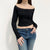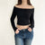 Black Lace Trim Knit Bow Off Shoulder Top– STUNNING Clothing
