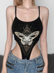 The bodysuit is decorated with a hollow out design, adding a touch of allure and sophistication. The color style is a floral lace mesh patchwork, creating a visually stunning and eye-catching look. The collar style is spaghetti strap, adding a feminine and delicate touch to the overall design.