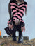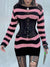 This vintage style dress is crafted from a lightweight fabric with a delicate empire silhouette and is adorned with a colorful striped pattern.