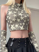 Print Mesh Patchwork Off-shoulder Sleeveless Top– STUNNING Clothing