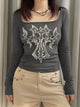 This streetwear top is designed with a short length, giving it a trendy and fashionable look. It features appliques as decorations, adding a unique and stylish element to the design. The top has a slight stretch, providing a comfortable and flexible fit. The sleeves are regular in style and have a full length, making it suitable for all seasons.