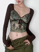 The top offers a slight stretch, providing some flexibility and comfort. The sleeve style is flare sleeve, adding a trendy and feminine touch to the garment. It is designed in a streetwear style, perfect for casual and urban-inspired looks. The pattern on the top is striped, adding a classic and timeless element to the design. It has a regular fit, ensuring a comfortable and relaxed silhouette.