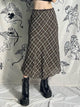It features a print pattern, adding visual interest and uniqueness to the design. The skirt has a regular fit, providing a comfortable and flattering silhouette. The silhouette of the skirt is straight, falling straight down from the waist to the hem. It has an ankle-length, reaching down to the ankles. The skirt does not have any specific decorations. The color style of the skirt is a combination of prints and contrast colors, creating a visually striking and vibrant look.