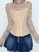 The fabric type is knitted, offering a soft and cozy feel. The top is made primarily of polyester, known for its durability and wrinkle resistance. It also contains spandex for added stretch and comfort. It features a hand-painted pattern, giving it a unique and artistic look.