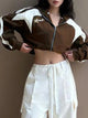Brown Zip-Up PU Leather Cropped Jacket– STUNNING Clothing