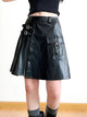 The skirt is made from polyester, providing a lightweight and comfortable feel. The style of the skirt is streetwear, giving it a trendy and urban look. It does not have elasticity, meaning it does not stretch and provides a more structured fit. The fabric used is leather, adding a touch of edginess and sophistication to the overall design. The waistline of the skirt is dropped, sitting lower on the hips for a relaxed and comfortable fit.