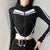 This top is a stylish and trendy piece that is perfect for streetwear fashion. It features zippers and spliced decorations, adding a unique and edgy touch to the overall design. The top is made from a combination of polyester, nylon, and spandex, providing a comfortable and stretchy fabric that is perfect for everyday wear.