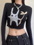 This top is designed in a streetwear style, giving it a trendy and urban look. It has a short clothing length, making it perfect for pairing with high-waisted bottoms or layering with other pieces. The decoration on the top includes appliques, adding a unique and playful element to the design. It has a slight stretch, allowing for a comfortable and flexible fit. The sleeve style is regular, with full-length sleeves providing coverage and warmth.