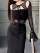 Black Skinny Mesh Patchwork...