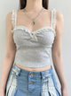 This piece is made from polyester and spandex with medium stretch and features a lace patchwork and round neckline.