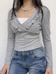 The sleeves are long, providing coverage and warmth. The collar is a V-neck, adding a flattering and feminine touch to the top. The fit type is skinny, accentuating the wearer’s figure and creating a sleek and form-fitting silhouette. Overall, this top combines style, comfort, and versatility, making it a great choice for various occasions.