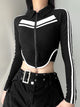 The style of the top is streetwear, with a modern and fashionable look. It has a solid pattern, adding a versatile and timeless element to the design. The top has full-length sleeves, making it suitable for cooler seasons or for layering with other pieces. It is categorized as outerwear, specifically a jacket, adding versatility to the garment. The clothing length is extra short, creating a cropped and trendy look.