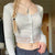 The top is designed in a vintage style, giving it a nostalgic and timeless look. It is suitable for a junior age group, catering to a youthful and trendy aesthetic. The clothing length is short, adding a playful and flirtatious element to the design. The top features lace decoration, adding a delicate and feminine touch.