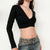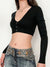 Black V Neck Buttons Long Sleeves Crop Top– STUNNING Clothing