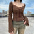 It offers a slight stretch, providing a comfortable and flexible fit. The sleeve style is flare sleeve, adding a trendy and feminine touch to the garment. It is made from a knitted fabric, known for its softness and warmth. The top is crafted from polyester, ensuring durability and easy care.