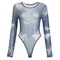 Blue Butterfly Printed See-Through Mesh Bodysuit
