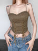 It features a leopard print pattern with a slim fit, slim spaghetti straps, and a lace-up neckline.