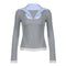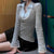 Grey Lace Patch Turn-Down Collar Top– STUNNING Clothing