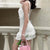 Sweet Ruched Lace Trim Bow Mini Dress– STUNNING Clothing